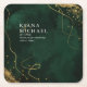 Fine Lines Gold Abstract Wedding V1 Emerald ID867 Square Paper Coaster
