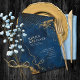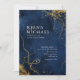 A watercolor background in shades from royal blue to navy is topped by an abstract of fine gold lines and glittering lighting effects to create the pieces of this beautiful wedding suite. The wedding 'Invitation' card shown here also features off-centered text; and a fine gold mesh border on the reverse. Easily add your own names, wedding date and event details using the provided template. Search ID867 to see other pieces and color choices for this set.