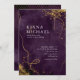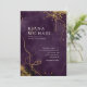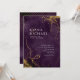 A watercolor background in shades of plum purple is topped by an abstract of fine gold lines and glittering lighting effects to create the pieces of this beautiful wedding suite. The wedding 'Invitation' card shown here also features off-centered text; and a fine gold mesh border on the reverse. Easily add your own names, wedding date and event details using the provided template. Search ID867 to see other pieces and color choices for this set.