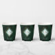 A watercolor background in shades of emerald green is topped by an abstract of fine gold lines and glittering lighting effects to create the pieces of this beautiful wedding suite. The wedding paper cup shown here also features a gradient, diamond-shaped frame to hold the bride and groom's initials and wedding date. Easily add a personal thank you message using the provided template. Search ID867 to see other pieces and color choices for this set.