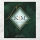 A watercolor background in shades of emerald green is topped by an abstract of fine gold lines and glittering lighting effects to create the pieces of this beautiful wedding suite. The wedding wine label shown here also features a gradient, diamond-shaped frame to hold the bride and groom's initials and wedding date. You also have the option to add the type of wine and a personal message using the provided template. Search ID867 to see other pieces and color choices for this set.