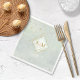 A watercolor background in shades of sage green is topped by an abstract of fine gold lines and glittering lighting effects to create the pieces of this beautiful wedding suite. The wedding paper napkin shown here also features a gradient, diamond-shaped frame to hold the bride and groom's initials and wedding date. Search ID867 to see other pieces and color choices for this set.