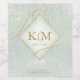 A watercolor background in shades of sage green is topped by an abstract of fine gold lines and glittering lighting effects to create the pieces of this beautiful wedding suite. The wedding wine label shown here also features a gradient, diamond-shaped frame to hold the bride and groom's initials and wedding date. You also have the option to add the type of wine and a personal message using the provided template. Search ID867 to see other pieces and color choices for this set.
