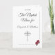 Design cover features the image of fine roses in lower right corner. A lovely flourish act as border. Initials of bride and groom are displayed at top in a lovely silver-colored font. The customizable heading, "The Nuptial Mass for" is displayed below. Names of bride and groom follow and appear above the image of a silver-colored cross with wedding rings intertwined. Very elegant. Inside design follows the traditional format for a Catholic Nuptial Mass with room for up to seven bridesmaids and Groomsmen. Back features names for flower girl and ring bearer. A customizable message of gratitude and an optional memorial for those loved ones who have passed is included. Of course, all text is customizable to display your choice of wording. The photo you supply is displayed below. Date of wedding appears just below photo. Designed to coordinate with the "Fine Roses Catholic Wedding Suite."