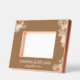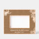 This exquisite Wood photo frame with laser engraving frame is adorned with an elegant floral motif featuring delicate roses and hydrangeas nestled among lush green leaves. The text displays the spouse names and the wedding date in a classical serif font which further enhances the overall sophistication. Personalize it and put a picture of your wedding to get a wonderful keepsake of your wedding day.