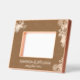 This exquisite Wood photo frame with laser engraving frame is adorned with an elegant floral motif featuring delicate roses and hydrangeas nestled among lush green leaves. The text displays the spouse names and the wedding date in a classical serif font which further enhances the overall sophistication. Personalize it and put a picture of your wedding to get a wonderful keepsake of your wedding day.