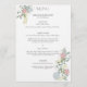 This exquisite wedding menu is adorned with an elegant floral motif featuring delicate roses and hydrangeas nestled among lush green leaves. The classical script and serif fonts further enhance the overall sophistication.