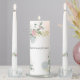 This exquisite wedding candles set is adorned with an elegant floral motif featuring delicate roses and hydrangeas nestled among lush green leaves.