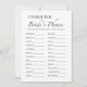 Introducing the "Finish The Bride's Phrase" game card, a delightful minimalist black and white bridal shower game designed by CaMiDesigns. This elegant card invites guests to complete fun and heartfelt phrases, creating a memorable and engaging experience for the bride and her loved ones. Perfect for adding a touch of creativity and laughter to any bridal shower celebration. For assistance with orders, shipping, product information, and more, please contact Zazzle Customer Care directly.
