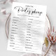Beautiful design. Fun game for a Bridal Shower. Imagine my surprise when there was no “cheat” sheet. I contacted Zazzle for help but their ideas were to contact the developer. Haha there is no contact button. I ended up Googling the game and coming up with my own solution. Cute game but maybe downloading it via Etsy would have been a better idea. .