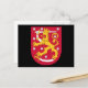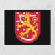 The coat of arms of Finland is a crowned lion on a red field, the right forepaw replaced with an armoured hand brandishing a sword, trampling on a saber with the hindpaws. The coat of arms was originally created around the year 1580.