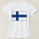 The front of this t-shirt boldly displays the Finnish flag with its distinctive offset blue cross on a white background. This is matched at the back by an attractive map of Finland.
