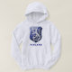 White (but any available color works) hoodie depicting Finland coat of arms displayed on a shield design that picks up on the theme. Note the options for image enhancing. This one uses the white undertone to enhance design.
