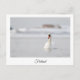 Finland souvenir postcard with Mute swans swimming in the ice cold water with icy and snow covered island on the background.