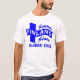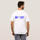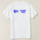 blue / white print, smaller on the back. Select your shirt's style and color.