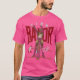 My 11 yo wore adult XL (5’7” 165#). The 8yo is small framed. She wore adult small and tied it in the back. Grandma wore adult large with long sleeve shirt underneath. Tall girl adult medium. Dark haired male adult large. Good quality dark Heather gray, Gildan brand shirt. -it was next up from basic choice and cost about $20 per shirt. Not too thick or thin. Washed and dried well, no major shrinkage. Not see-through. Can wear a bra under it fine. Screen print is just as shown and well done, front and back.