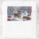 Finnish Lapphund Running Snow with Christmas Hat Rectangular Sticker