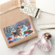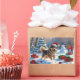 A fluffy Finnish Lapphund runs joyfully through the snowy winter scene, wearing a festive red Christmas hat. This charming design showcases the breed’s thick coat, playful personality, and affectionate nature while capturing the warmth and magic of the holiday season. A delightful winter moment full of festive cheer.