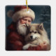 Finnish Lapphund Santa Claus Festive Christmas Ceramic Ornament