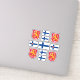 Four Custom-cut vinyl stickers with the coat of arms of Finland and seven stickers with the Finnish flag in the center