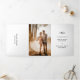 Contemporary and modern tri-fold wedding invitation featuring a simple and minimal design with your three initial monogram along with your names and wedding date in bold typography. The back has your favorite photo. This minimalist black and white typographic wedding invitation can be customized to any color you choose in the design editing tool.