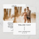 Contemporary and modern style budget wedding thank you card featuring a simple and minimal design with "Thank You" along with your names and wedding date in bold typography below your favorite photo. The back has a second picture, your three initial monogram and your personalized message. This minimalist black and white typographic wedding thank you card can be customized to any color you choose in the design editing tool.