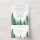 Fir tree wedding invitations with beautiful watercolor forest of fir trees on a choose your own color background. These beautiful rustic fir tree wedding invitations are easily customized for your event by simply adding your details in the font style and wording of your choice.