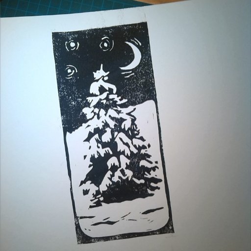 Fir Tree in Snowy Landscape Lino Print Holiday Card