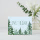 Fir tree wedding save the date postcards with rustic trees on a pale blue background. You can add the text of your choice in the font style you prefer. You can also change the font and background color.