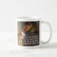 A brown and black cat breaths fire at an orange and white tabby cat as a warning on this funny mug. The white text reads, "And you thought it was a good idea to talk to me before I had my coffee, why?"