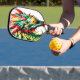 Fire breathing dragon red, green, and yellow scale pickleball paddle