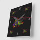 Multi-coloured flying dragons make for a great clock-face for children's bedrooms. The friendly dragons will protect them by chasing away bad dreams.