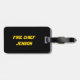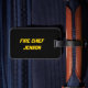 Fun black luggage tag printed on the front with the 5 gold bands that signify a Fire Chief's status. The rear of the luggage tag is printed with the Chief's name and rank which are both customisable