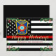Send Merry Christmas greetings to friends, business' , fellow firefighters and fire departments and your community with this unique Thin Red Line Fire Department Christmas Card - American Flag in firefighter flag colors, modern black and red with holly leaves and berries. Personalize with fire department logo, message and department . COPYRIGHT © 2020 Judy Burrows, Black Dog Art - All Rights Reserved. Fire Department Christmas Thin Red Line Holiday Card