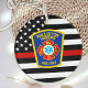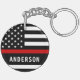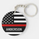Thin Red Line Fire Department Keychain - American flag in Firefighter Flag colors, modern black and red design . Customize with your department logo and firefighter name.. This personalized firefighter keychain is perfect for fire departments and fire service, promotional ideas, or gifts to your firefighters. COPYRIGHT © 2020 Judy Burrows, Black Dog Art - All Rights Reserved. Fire Department Custom Logo Emblem Firefighter Keychain