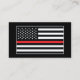 This design features a firefighter flag theme with a thin red line stripe. Customize with the name, position, and contact information of the firefighter, captain, chief or any employee working at the fire department. Features a thin red line flag on the back.