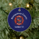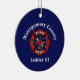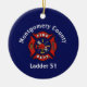 Stylish design for firehouses, firefighters and their families, features red generic fire department logo on dark blue background. Customize with city or county department details or firefighter name in modern white font