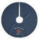 Stylish Christmas tree skirt for firefighters and other fire department employees, family and friends. Design features generic fire department logo in red, with customizable top and bottom text on dark navy blue background.