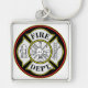 Red and yellow firefighters badge in circle. Fireman's, helmet, hook and ladder, fire hydrant and more create a great firefighting gift!