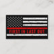 Perfect for all firefighters, and fire departments. Front- Personalize with name, department, address and contact info . Back- 'first in last out'. COPYRIGHT © 2020 Judy Burrows, Black Dog Art - All Rights Reserved. Fire Department Thin Red Line Firefighter Business Card