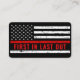 Perfect for all firefighters, and fire departments. Front- Personalize with name, department, address and contact info . Back- 'first in last out'. COPYRIGHT © 2020 Judy Burrows, Black Dog Art - All Rights Reserved. Fire Department Thin Red Line Premium Firefighter Business Card