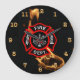 Fire Dept Flames Maltese Cross Firefighter Large Clock