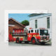 Fire Engine in Front of Fire Station Postcard