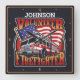 Fire Engine NAME USA Flag Volunteer Firefighter Square Wall Clock