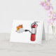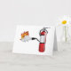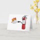 The best way to put out a fire is with a fire extinguisher. This design has a traditional red fire extinguisher that is squirting some foam on some flames to put them out. This fire extinguisher putting out a fire design looks great on these greeting cards