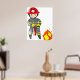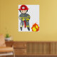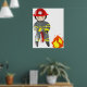 A fire fighter putting out a fire with an extinguisher. This design looks really effective on these Poster