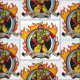 Fully dressed firefighting in firefighting gear with fire ax! This firefighter fears no fire! Fight to live, live to fight firefighters slogan with raging flames background! Heroic firefighting gift!