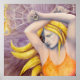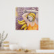 A poster with my mixed media painting Fire Goddess Dancing on it. The painting is a close-up of a woman dancing with poi fans.