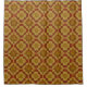 An old amish pattern known as Love Ring, Drunken Path, Slomen Puzzle and a few other. The patterns as a fire like overlay. The color harmony is warm using red, orange and yellow.