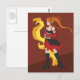 Postcard with a flat-color print of a girl who represents the spirit of fire. Hot!